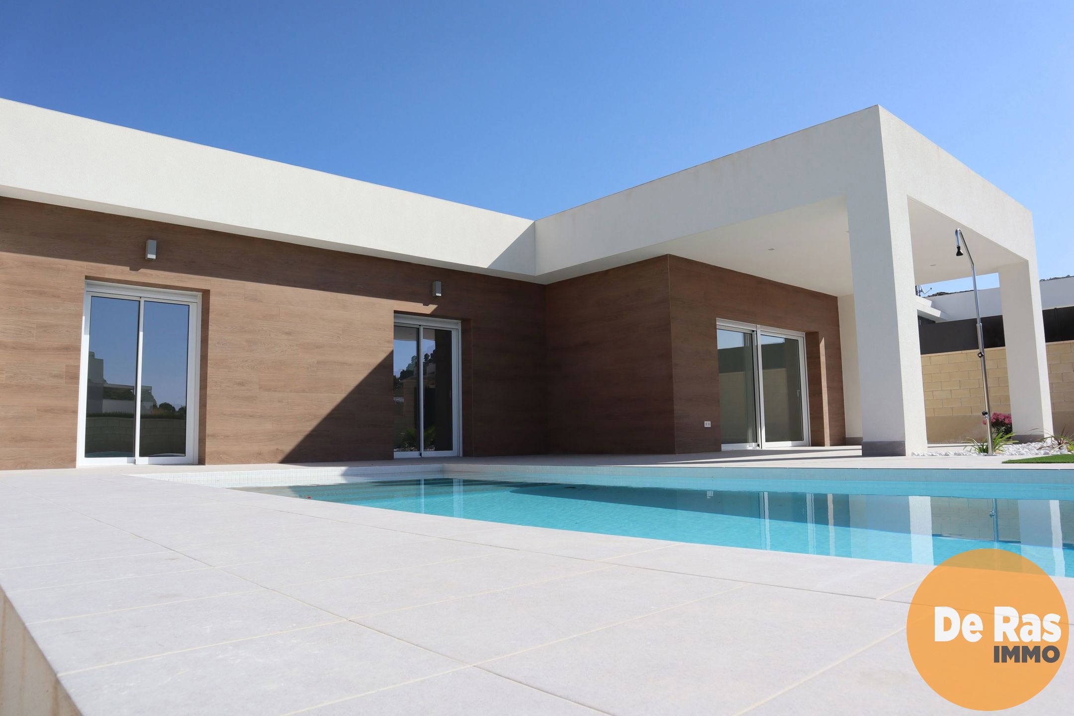 De ruime living en open keuken voorzien van alle toestellen zijn in te richten naar eigen smaak of zoals de kijkvilla. Verder zijn er 3 slaapkamers en 2 badkamers. Dit betreft een architecturaal hedendaags complex met schitterend privé zwembad. De villa is te verkrijgen met dakterras tegen een meerprijs.