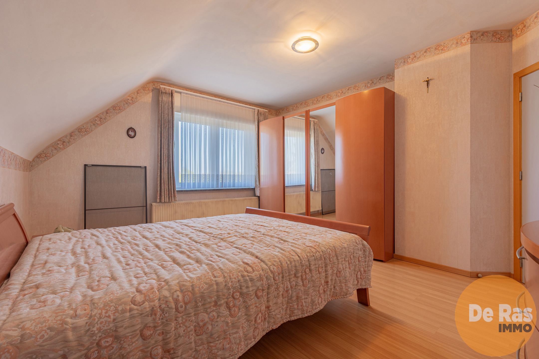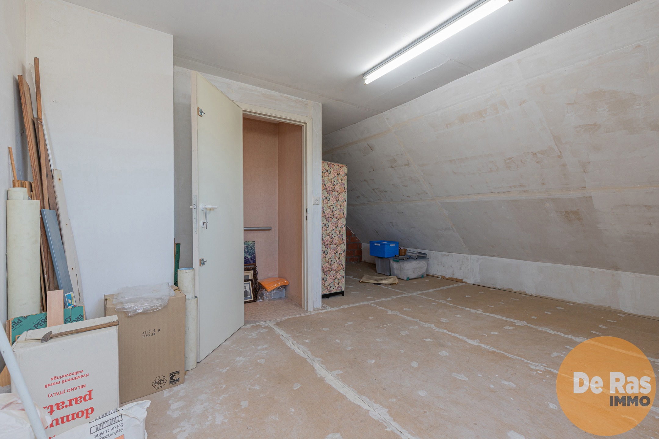 Op het verdiep zijn er twee slaapkamers en een badkamer met douche en bad. De vaste trap naar de zolder zorgt dan weer voor uitbreidingsmogelijkheden van het aantal kamers.