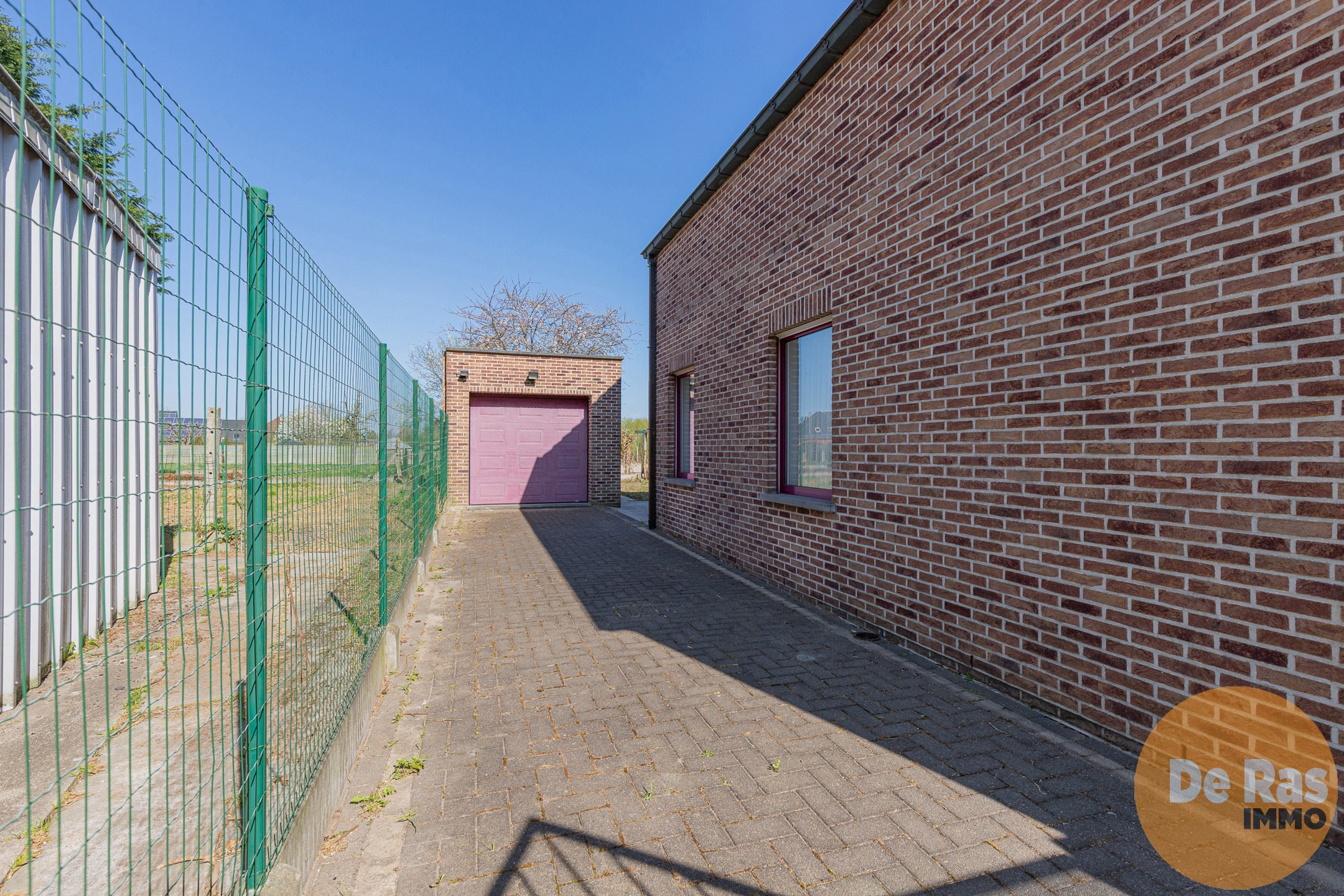 Naast de woning is er een grote oprit met hek en toegang tot de garage en tuinberging. De tuin geeft een mooi zicht en mogelijkheid tot beloop van huisdieren.