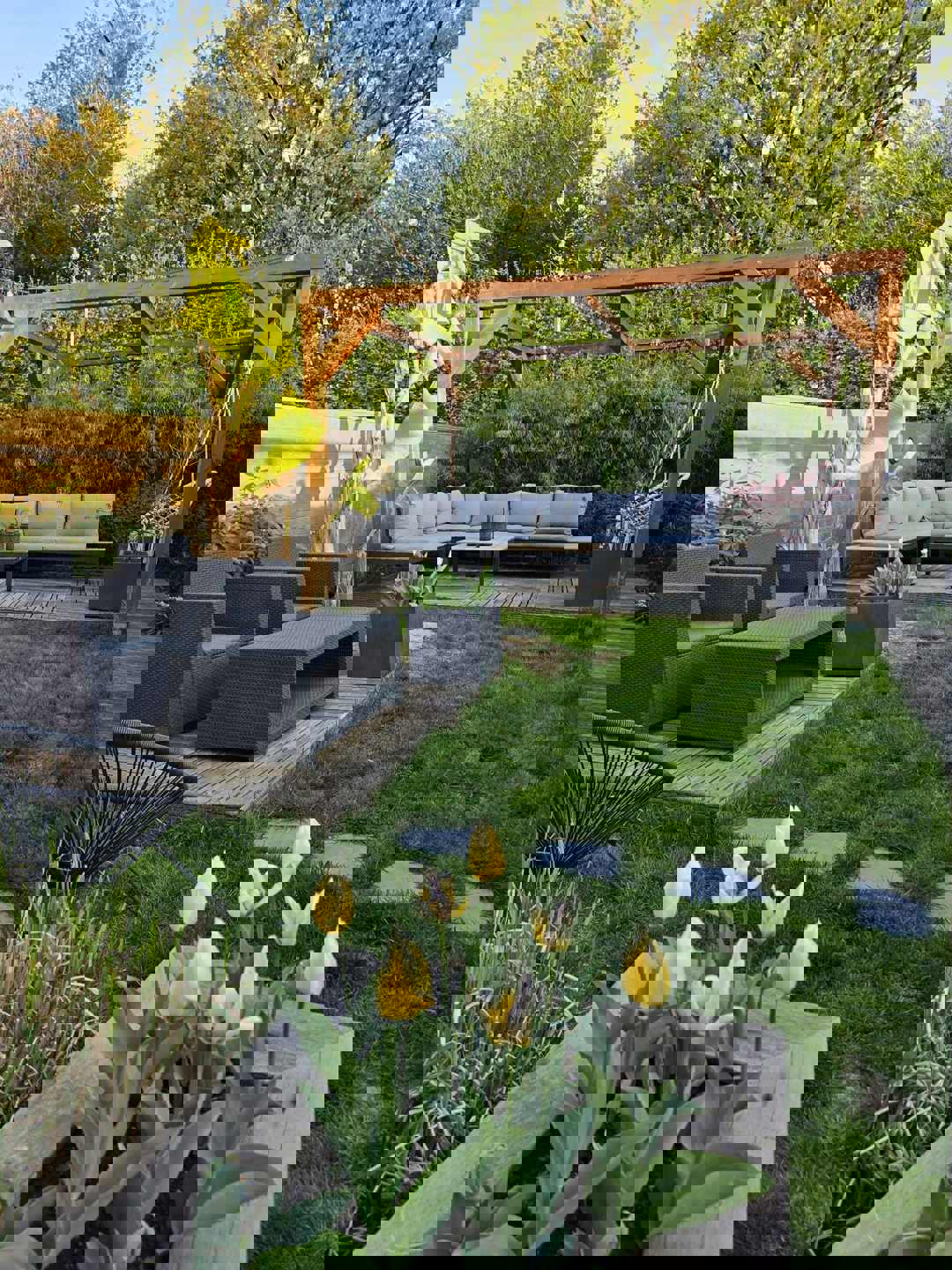 Buiten vinden we een zonnige, zuidgerichte tuin met aangelegd terras, perfect om van de buitenruimte te genieten. Deze beschikt tevens over een praktische opbergruimte.