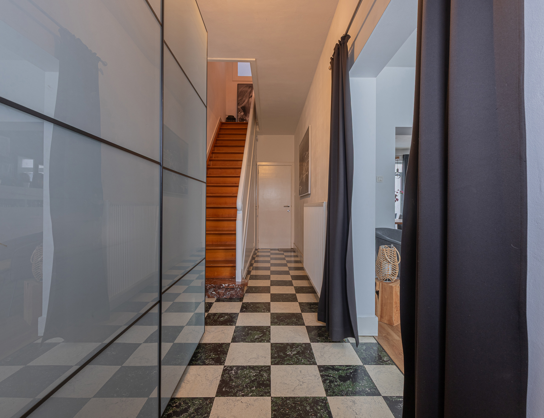 Op de eerste verdieping bevinden zich naast de ruime overloop, 2 slaapkamers en een functionele badkamer (volledig gerenoveerd in 2022).