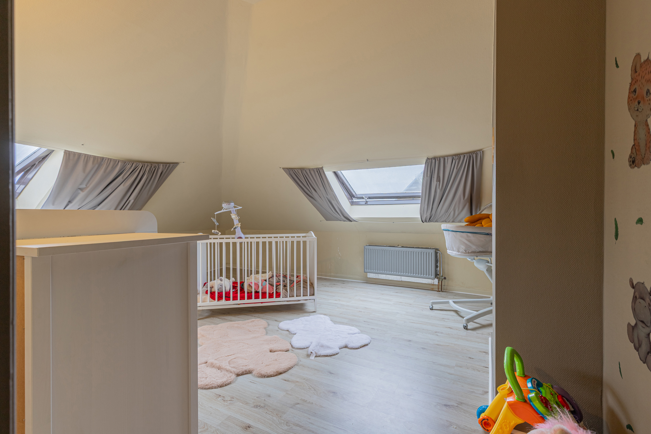 Een duplex appartement op de tweede en derde verdieping met gelijkaardige indeling op de eerste bouwlaag en daarbovenop drie extra slaapkamers en een tweede badkamer. Dit appartement biedt bijzonder veel ruimte en comfort, ideaal voor gezinnen. Het complex werd recentelijk volledig vernieuwd.
