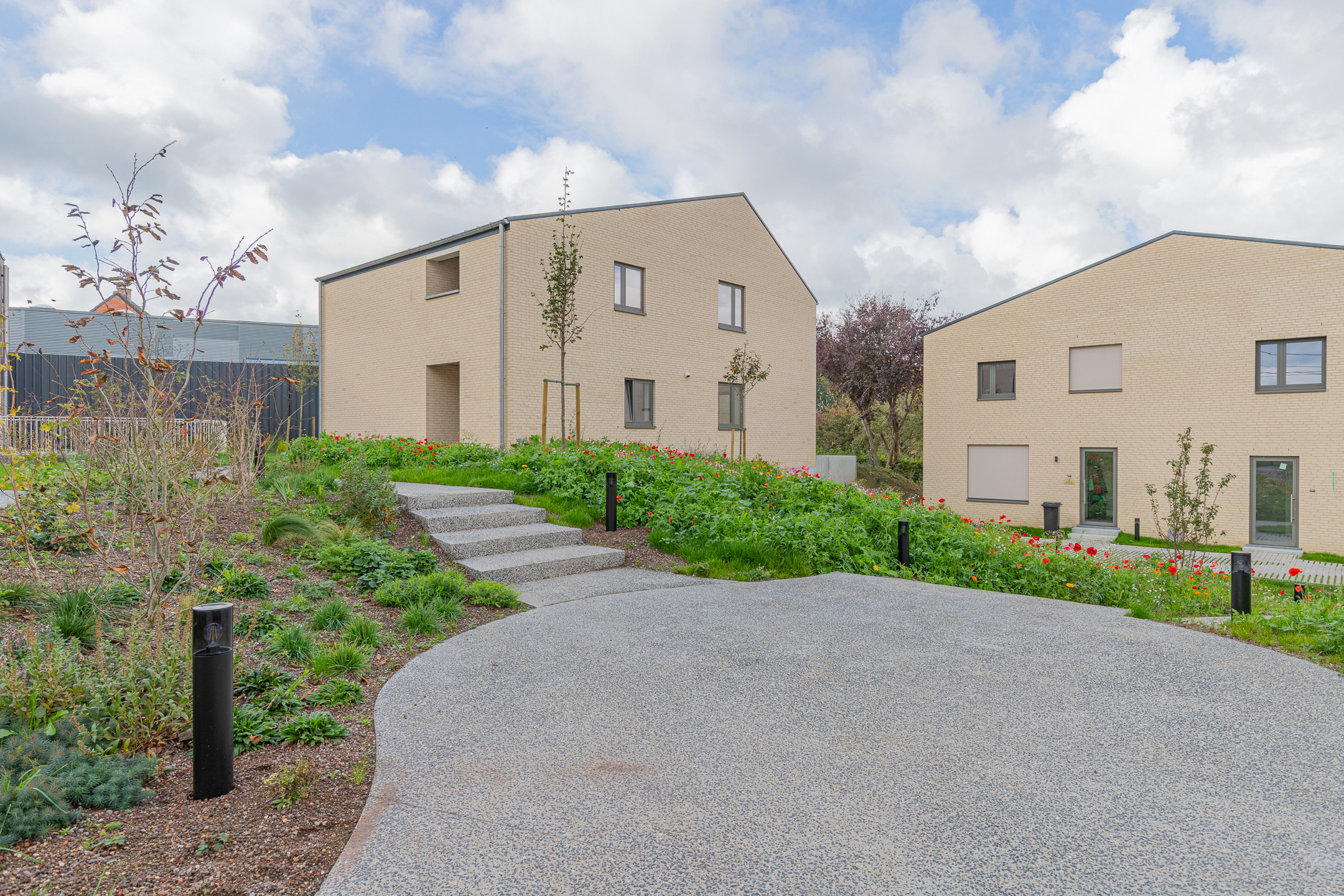 Geniet van het beste van twee werelden: een ruime gemeenschappelijke tuin waar bewoners kunnen ontspannen, samenkomen of kinderen veilig kunnen spelen en een privé terras bij elke woning voor je eigen rustmomenten. Daarnaast is er een polyvalente ruimte op het domein, perfect als ontmoetingsplaats, coworking plek, of voor gemeenschappelijke activiteiten.